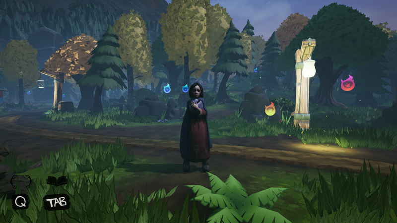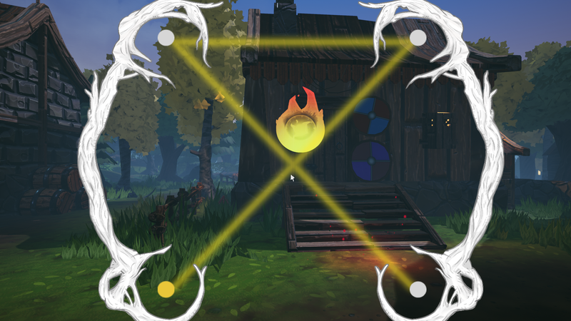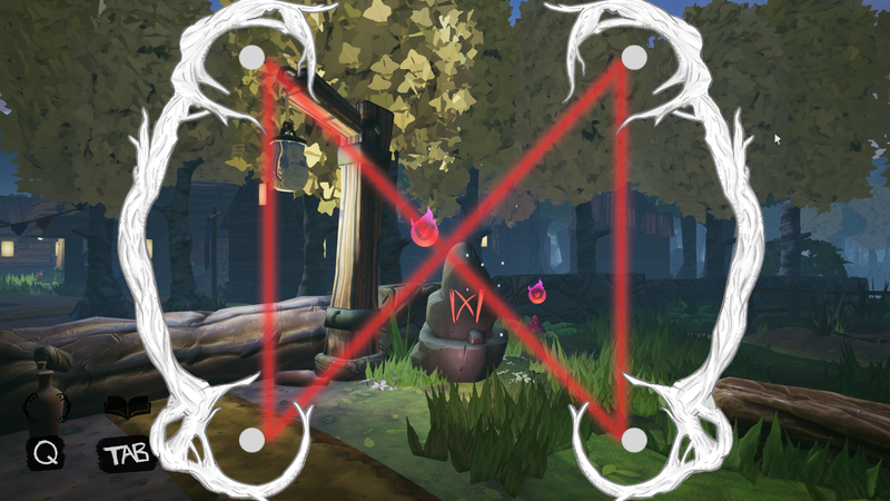 The singing mechanic revolves around four rune patterns, which are unlocked as the player progresses through the first level. Each rune represents a request for help that the Mother sings to the nature spirits, who help her along on her journey by harnessing nature's power. The singing UI revolves around four nodes, each tied to a different musical note. The starting note and order in which these four notes nodes are connected determines the song sung, and are used to complete various tasks around the level. Whilst the puzzles in the Telling the Bees demo were somewhat simple, this mechanic has great potential. Future development would see multiple runes being used in succession, with the player recognising which runes are most suited for the task and memorising their sequences.